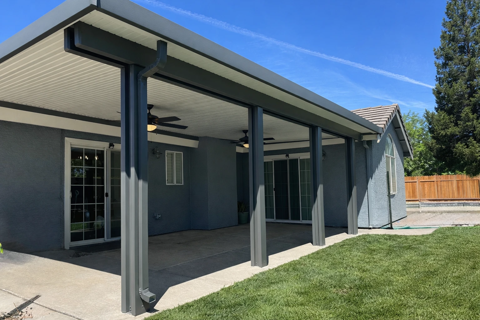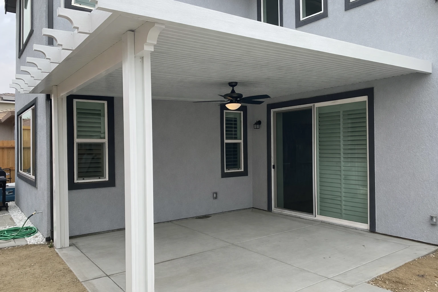 Gray Attached Solid Patio Cover Backyard